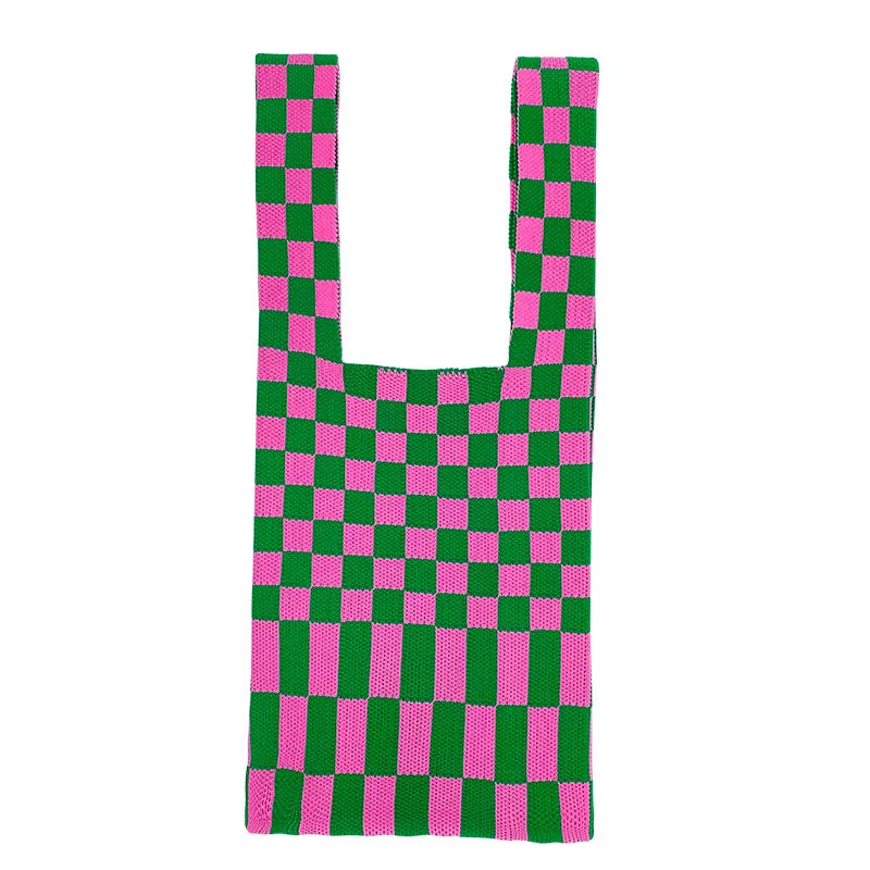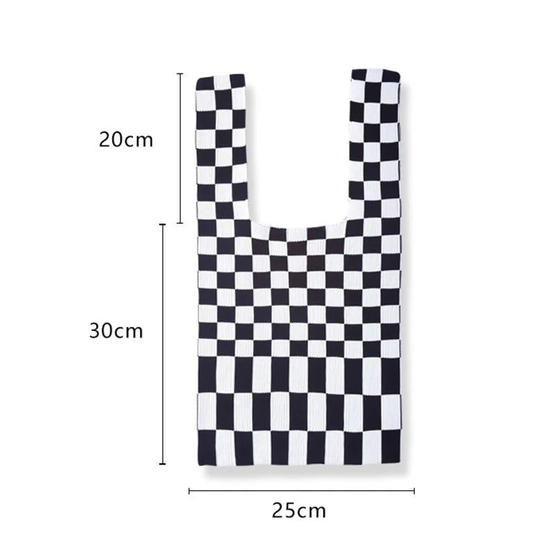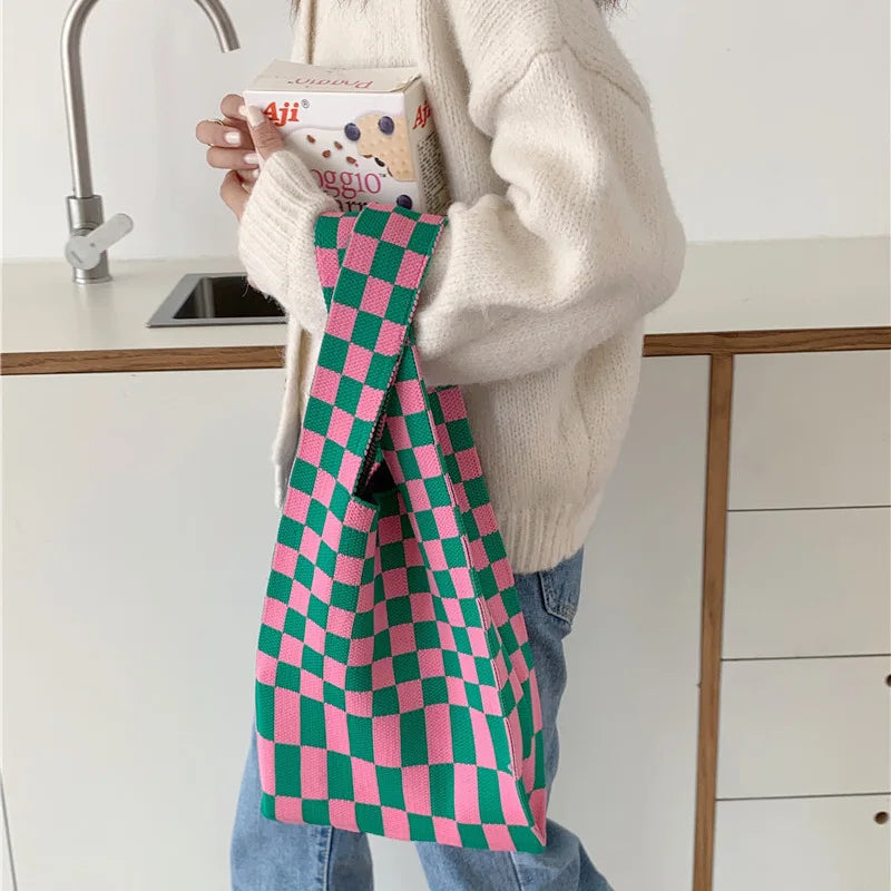 π Cozy Checker Chic Tote πβ¨ Large Capacity Knitted Bag for Trendy Adventures! π
