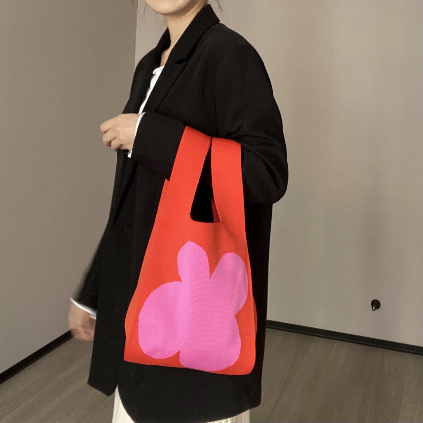 🌸 Adorable Floral Knit Tote Bag 🌼✨ Stylish Woven Purse for Trendy Ladies! 👜💖