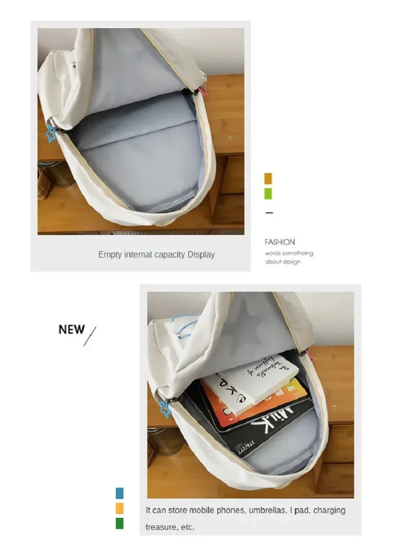 Unleash your inner star with this enchanting Kawaii Starry Backpack! Crafted from soft nylon and polyester, this stylish accessory (16.93 x 12.2 x 6.3 inches) boasts a spacious interior with convenient pockets for all your essentials. The charming star patch design adds a whimsical touch, making it perfect for school, shopping, or casual outings.