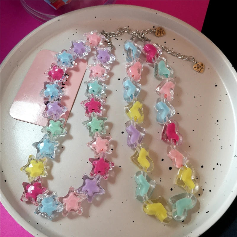 Kawaii Acrylic Heart & Star Choker 💖✨ - Retro Y2K Goth Aesthetic Necklace for Emo Girls