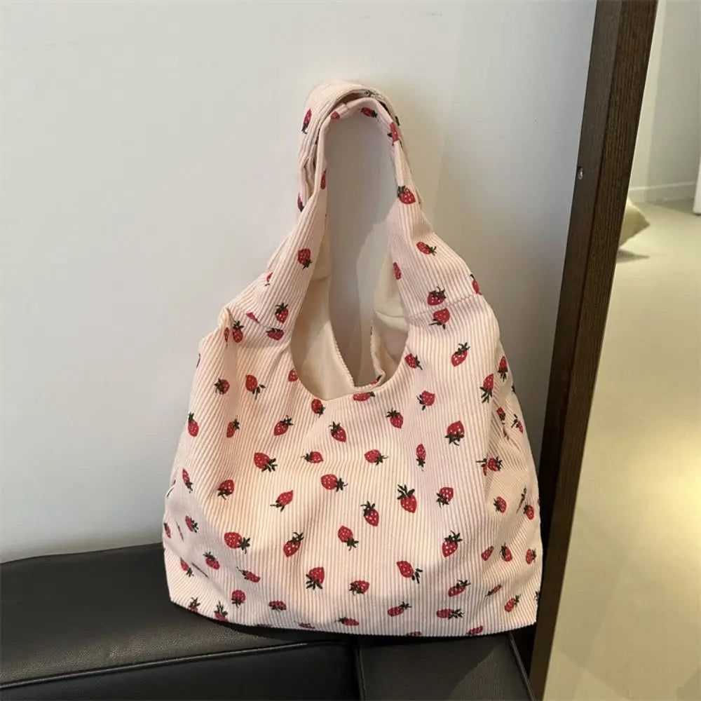 Strawberry Dream Tote πβ¨ - Adorable Square Corduroy Bag for Stylish Girls! πΈπ