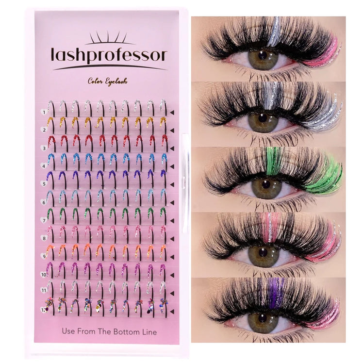 β¨ Kawaii Glittery Colorful Lash Extensions π - Shiny Volume for Party Glam! π