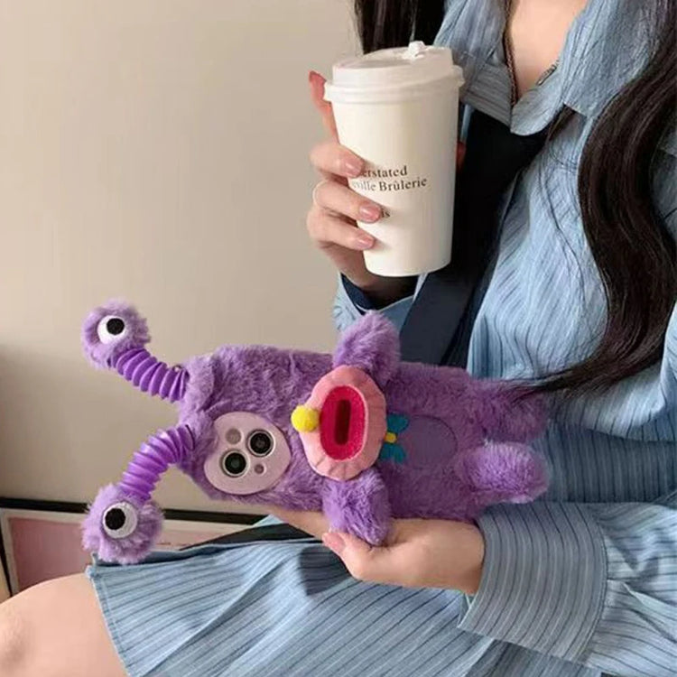 Kawaii Little Monster Plush Phone Case for iPhone πŸ“±βœ¨ - Soft, Glowing & Adorable! πŸ¦–πŸ’–