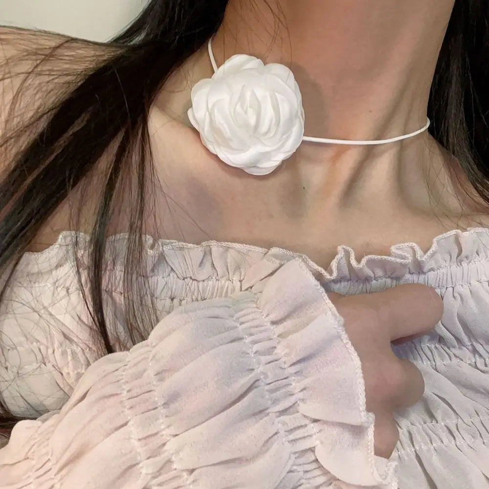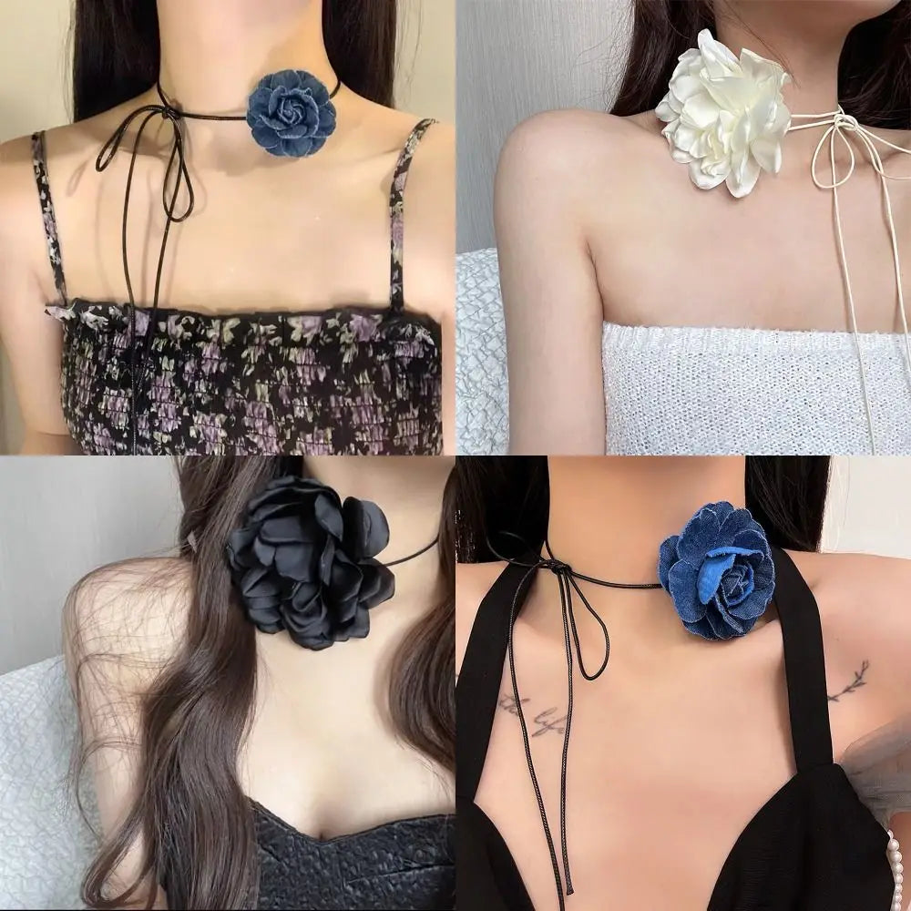 Kawaii Long Rose Flower Choker πΉβ¨ | Adjustable Romantic Necklace for Sweet Style πΈπ