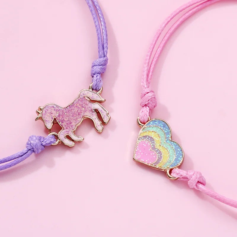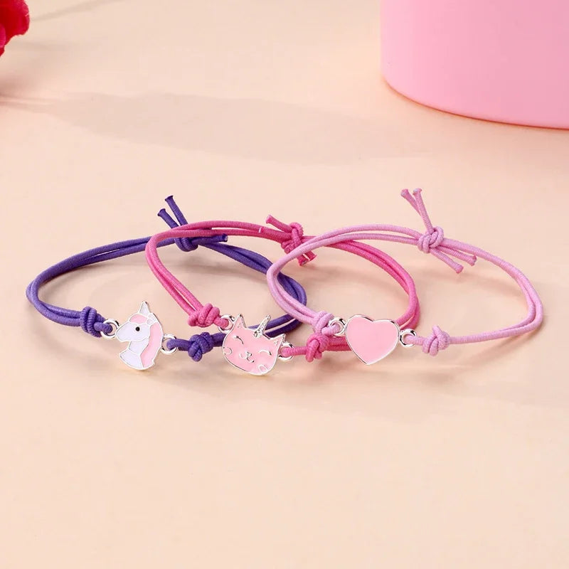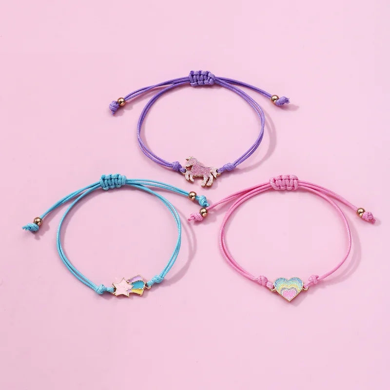 Get ready to sprinkle some magic on your little one's wrist with our Kawaii Charm Bracelet Set! This enchanting trio features adorable braided designs of a unicorn, heart, and star, perfect for any tiny trendsetter. Crafted from high-quality alloy, these bracelets are not just cute, but also durable for endless adventures!