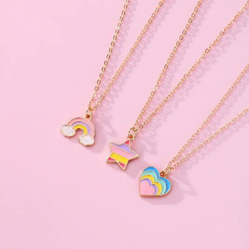 Embrace your friendship with our Kawaii 3Pcs Rainbow Star & Heart Necklace Set, designed to sprinkle joy and sparkle on your BFF moments! This enchanting trio features: