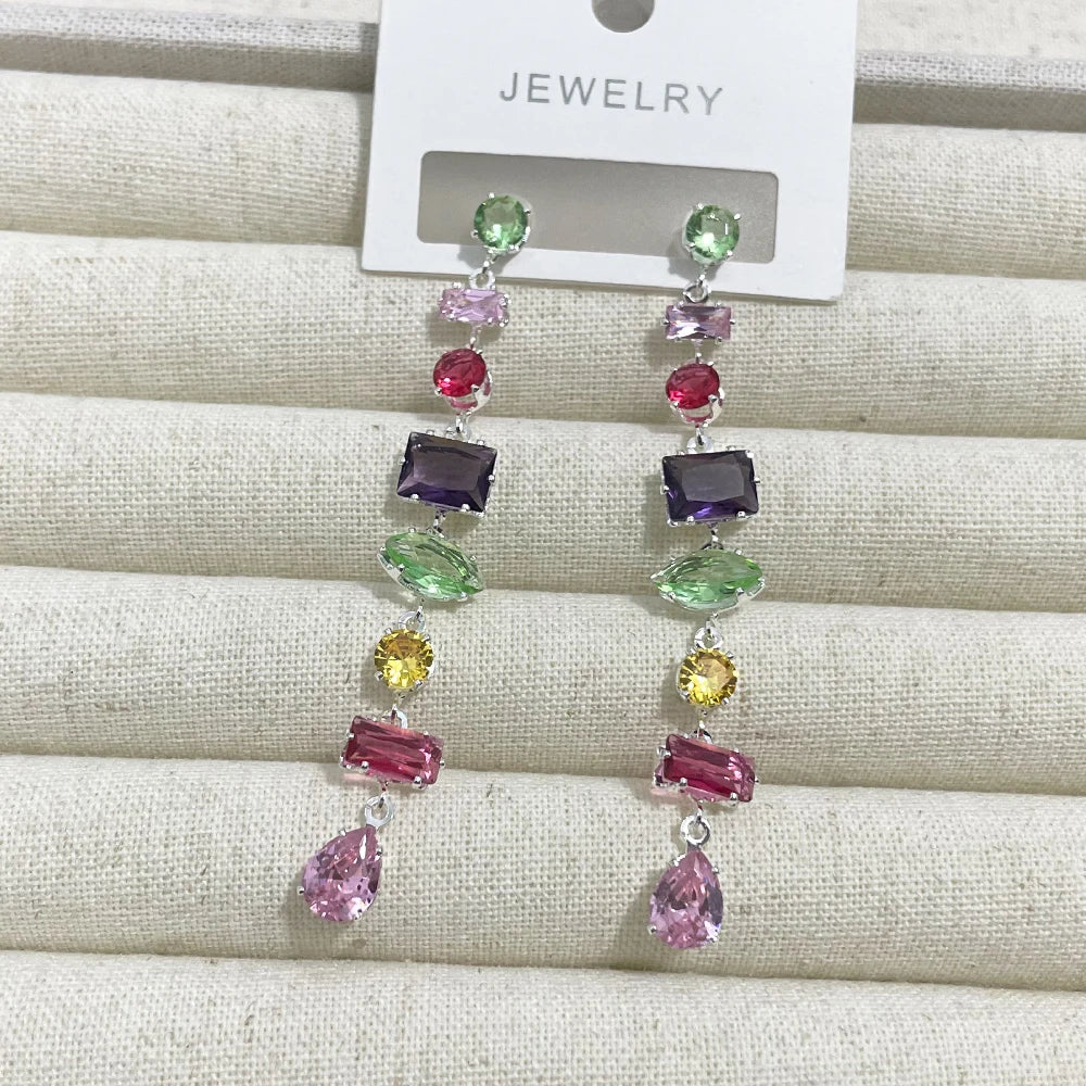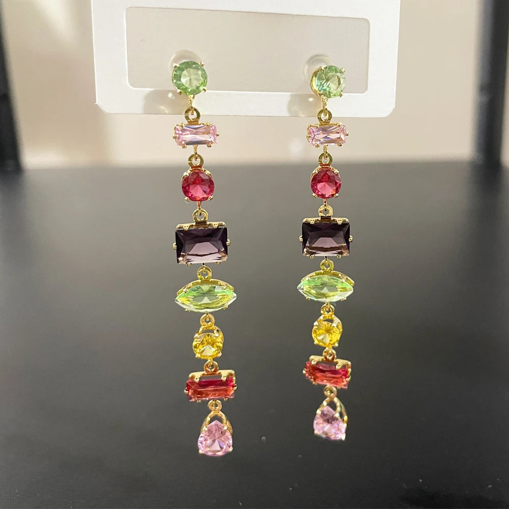 πβ¨ Kawaii Rainbow Crystal Drop Earrings ππ - Adorable Cubic Zirconia Bridal Accessories for Womenβs Special Occasions! ππ