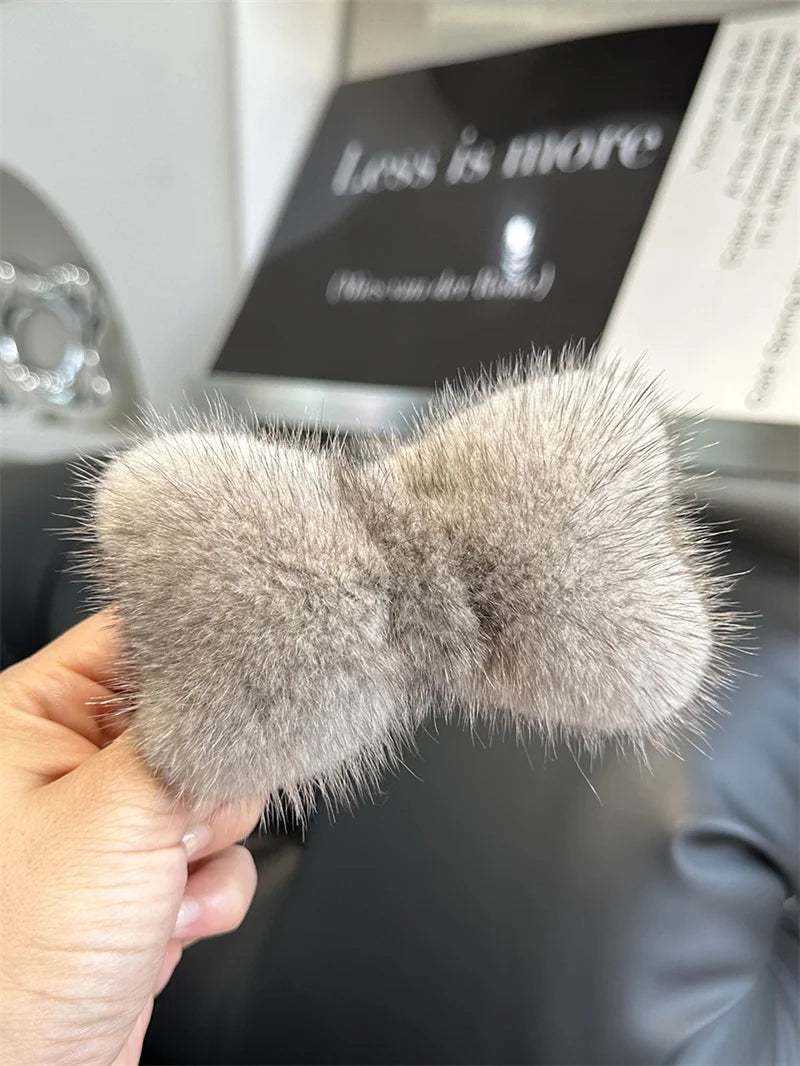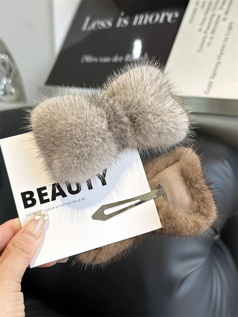 Kawaii Luxury Mink Fur Bowknot Hairpin πβ¨ Cute Plush Side Clip for Adorable Hair Styles! π