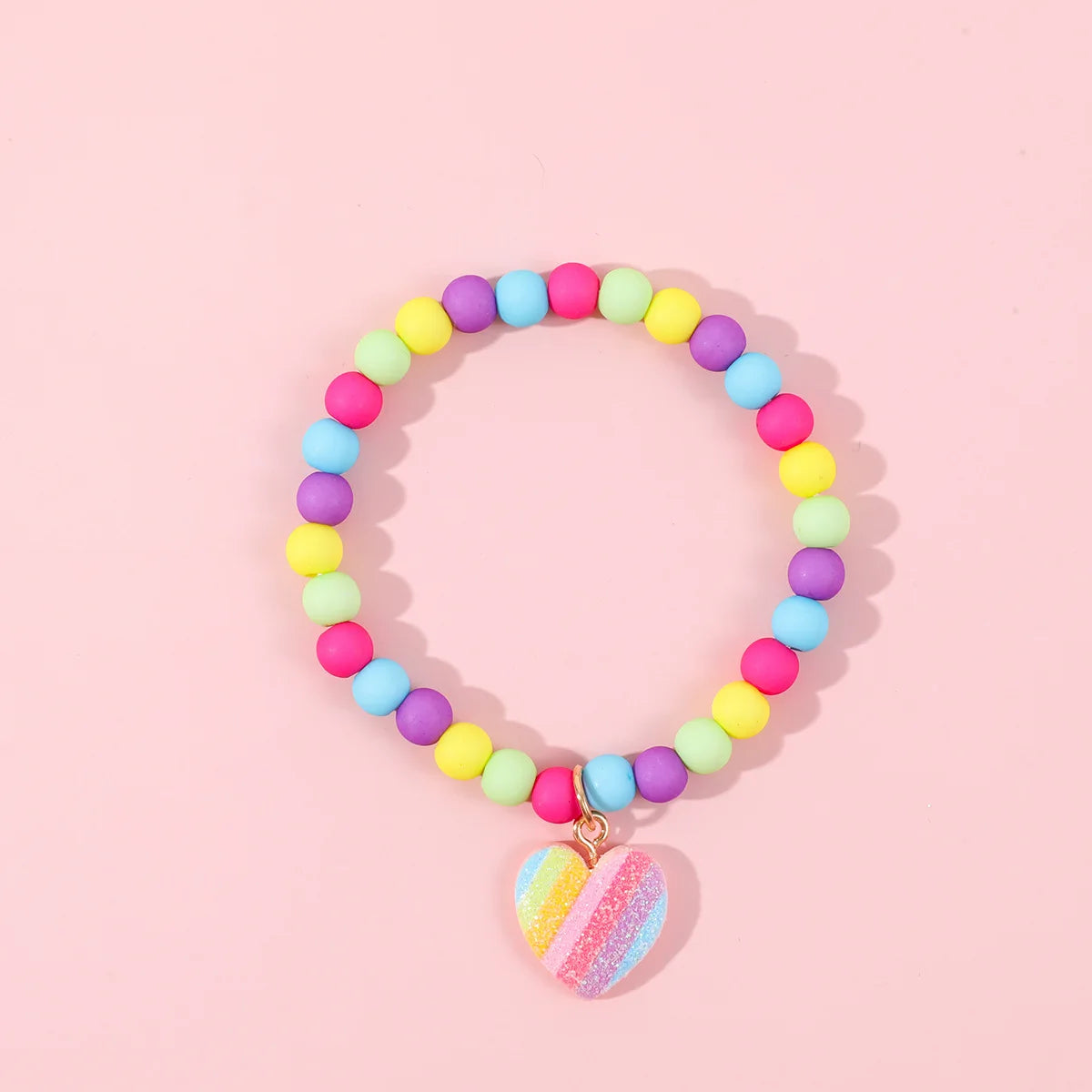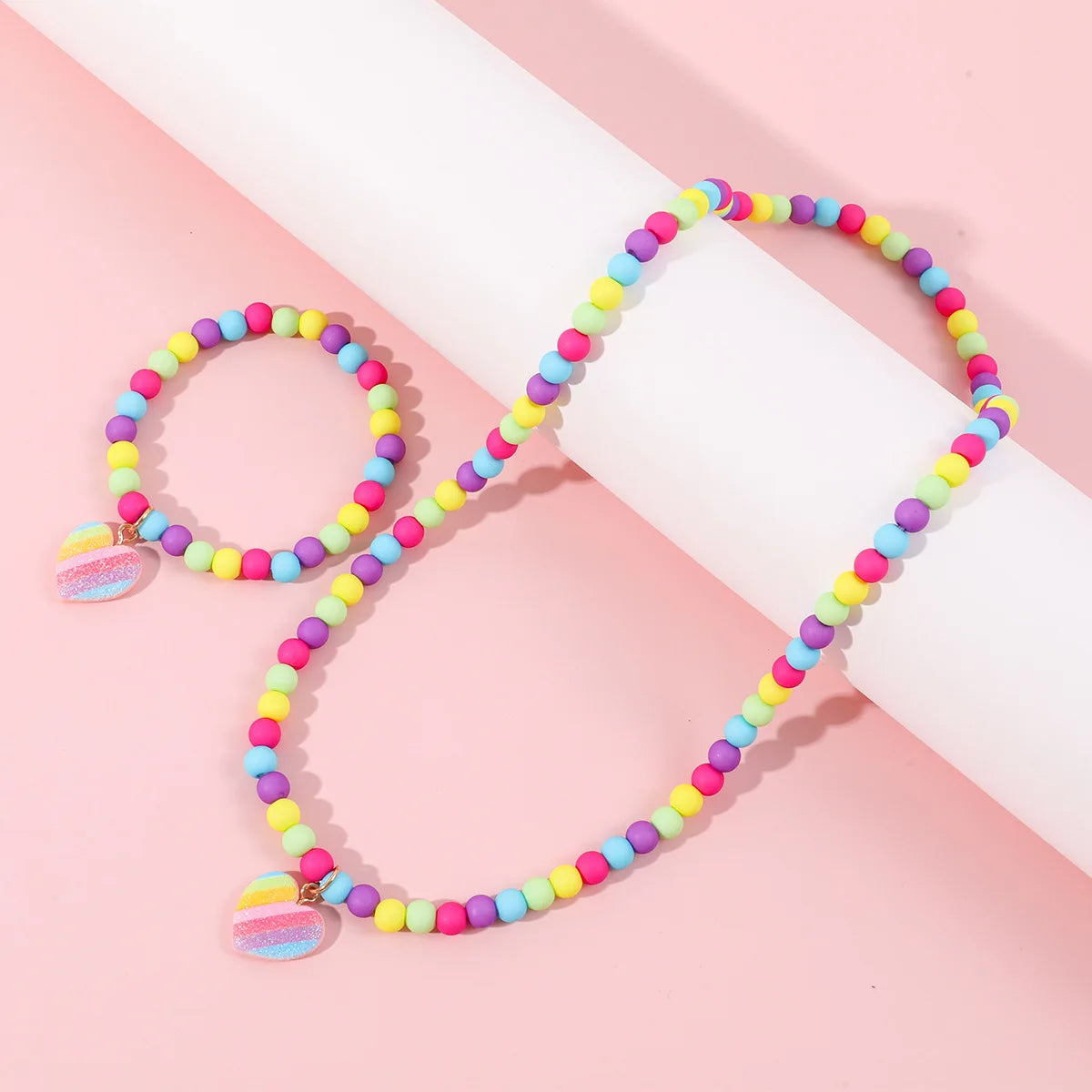 Kawaii Heart Charm Necklace & Bracelet Set ππ | Adorable Children's Jewelry Gift with Colorful Beads for Girls πβ¨