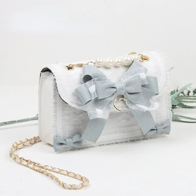 ⨠Kawaii Lolita Bow & Lace Crossbody Bag š | Pearl-Embellished Japanese Style Purse for Trendy Girls šø