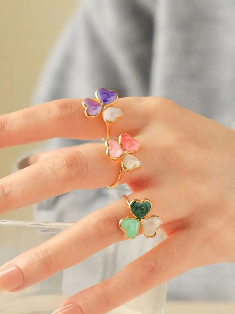 Lucky, colorful, and totally wearableβthatβs the clover ring your wardrobe has been dreaming of! Meet the multicolor enamel clover ring for women, crafted from durable stainless steel and finished with glamorous 18K gold plating.