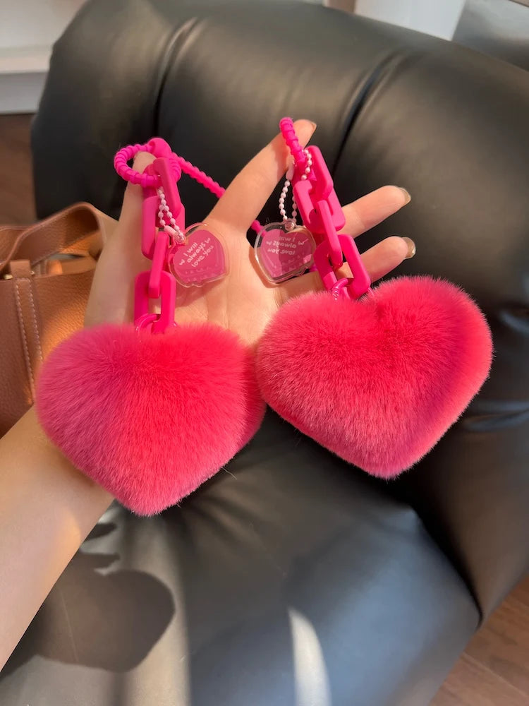 Kawaii Heart Fur Ball Keychain 🌸✨