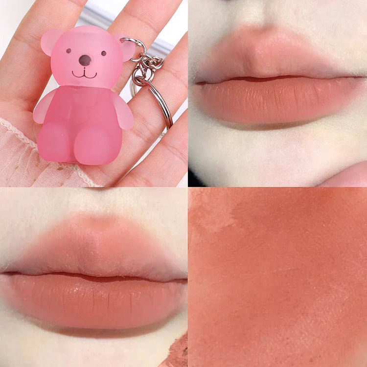 ✨ Adorable Bear Keychain Lip Mud - 12 Fun Colors! πŸ’„ Matte & Waterproof Velvet Lipstick for All Skin Types 🌈 Long-Lasting Lips Makeup! 🐻