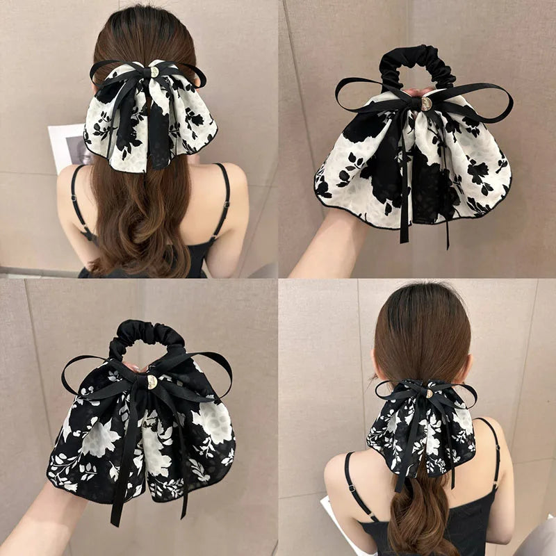 Spruce up your hairstyle with our Charming Floral Bow Ponytail Hair Ring! This delightful hair accessory is perfect for adding a touch of cuteness to any look. Crafted from soft, high-quality fabrics, it features a lovely floral bow that will brighten your day.