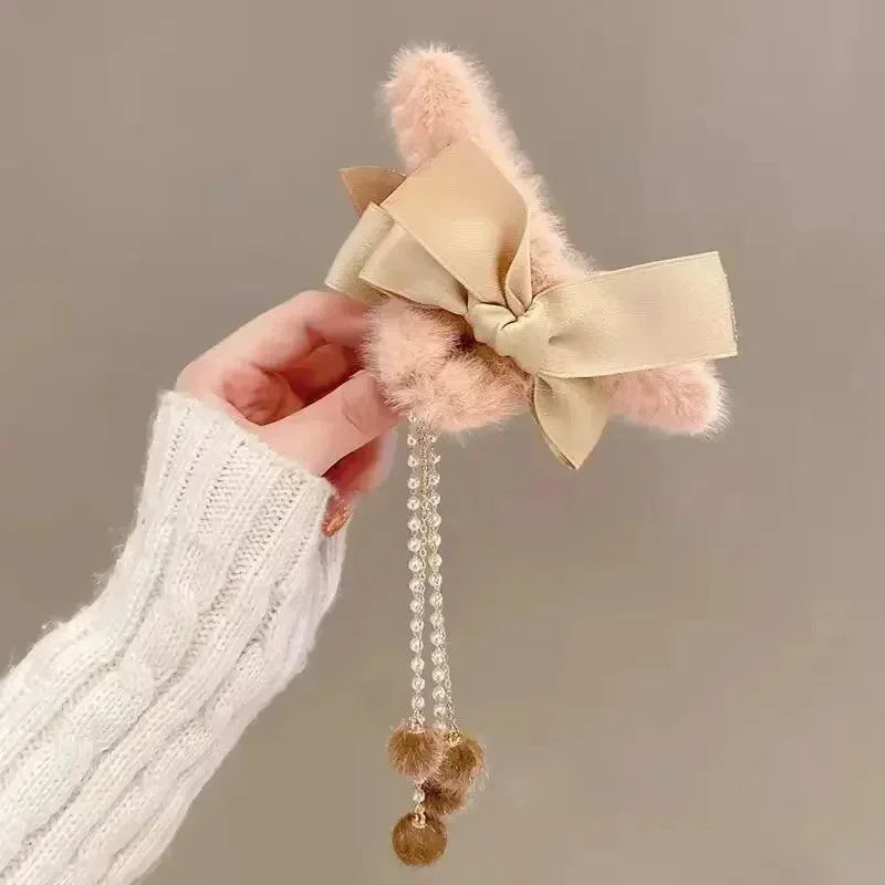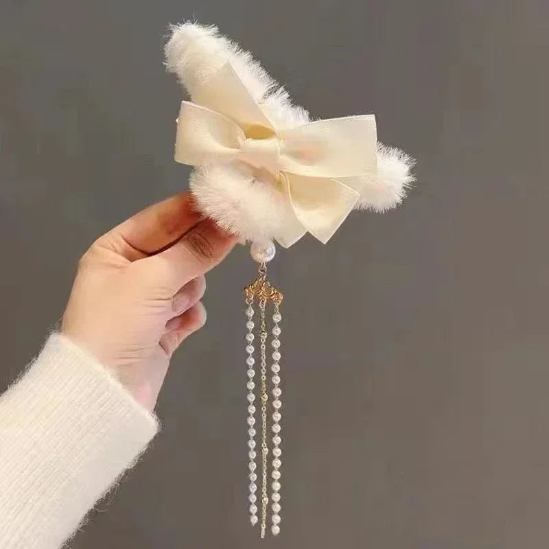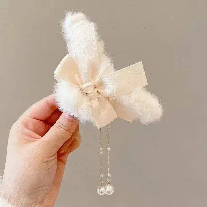 π Plush Bow & Tassel Hair Claw Clips β¨ Cute Korean Style for Girls - Perfect Fall & Winter Accessory! π¦