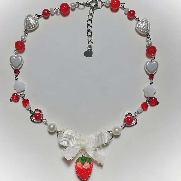 Kawaii Love Heart Strawberry Pendant Necklace ππ - Sweet & Trendy Jewelry for Women, Perfect Party Gift!