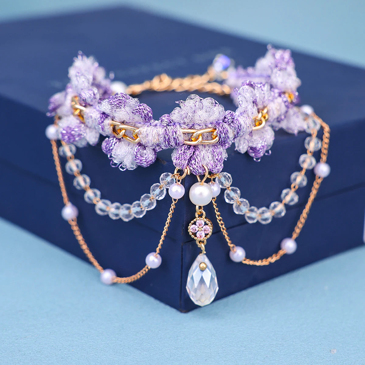 Kawaii Sparkle: Adorable Purple Rhinestone & Pearl Tassel Necklace πΈβ¨ Perfect for Bridal Bliss & Wedding Charm! π