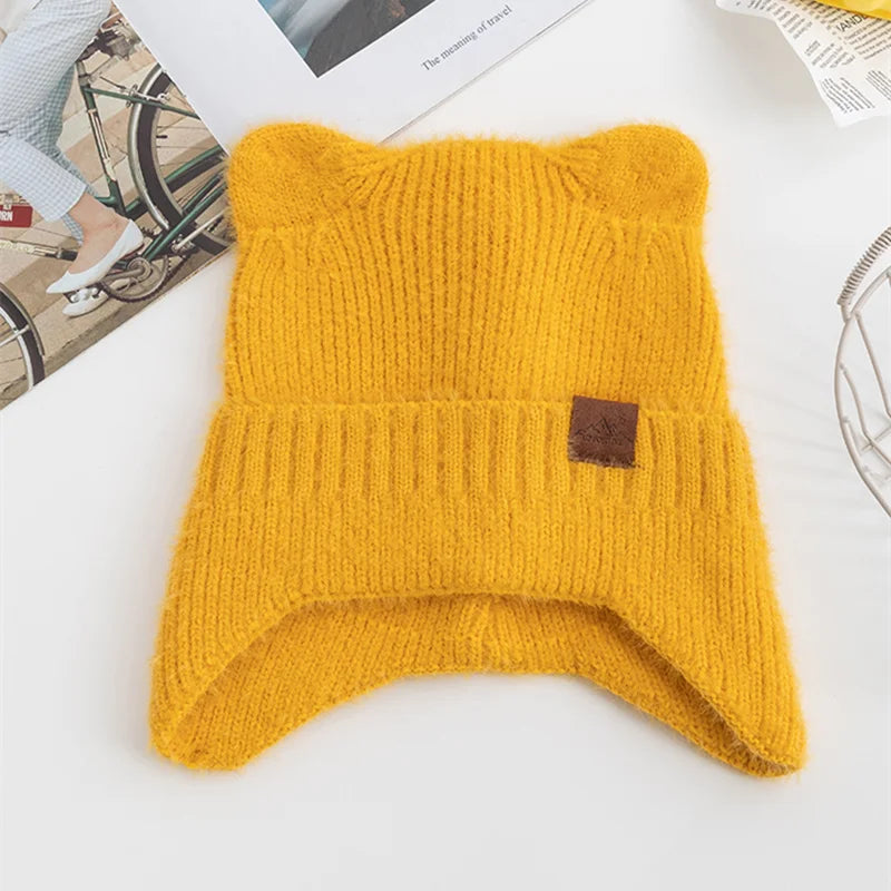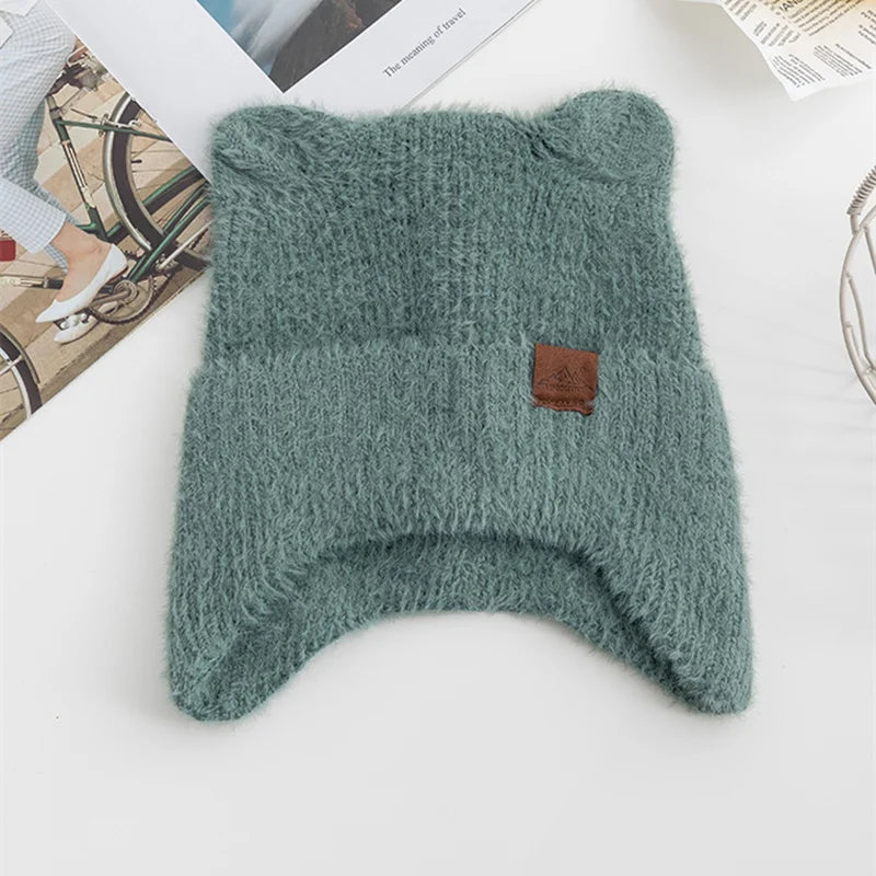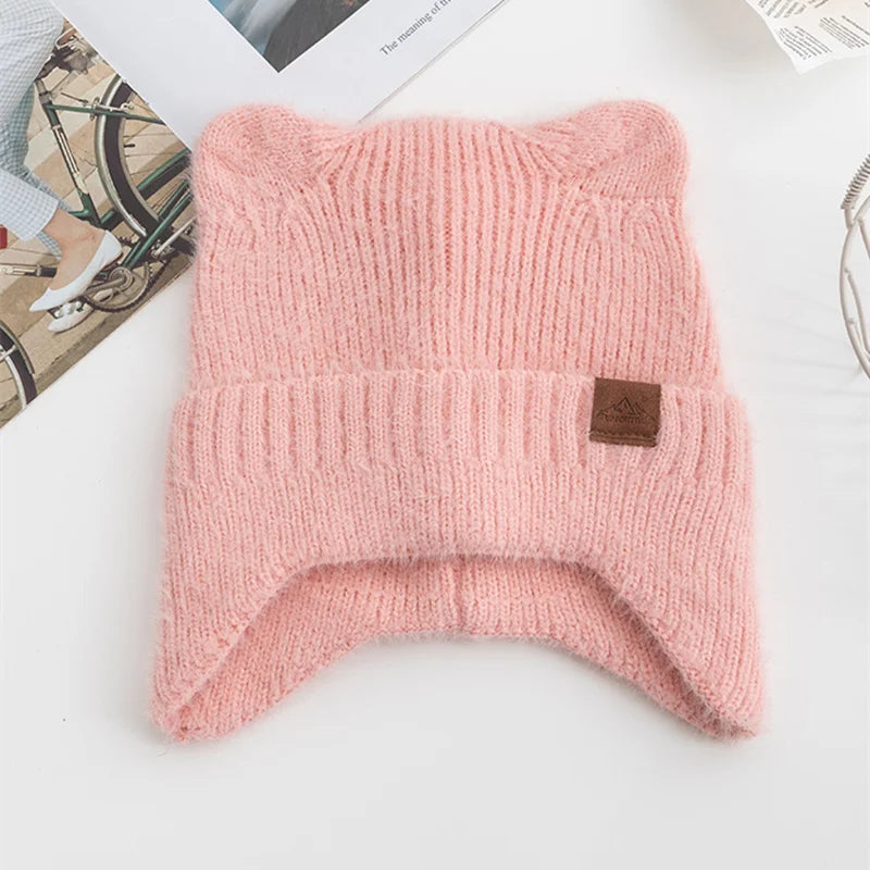 Kawaii Cat Ear Beanie πΎβ¨ | Soft Candy Color Knitted Hat for Women - Cozy Faux Fur Winter Fashion π