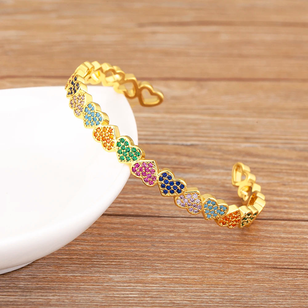 β¨ Kawaii Heart Shaped Zircon Adjustable Bangle - Cute & Shiny Jewelry for Women! ππ«