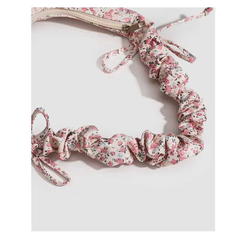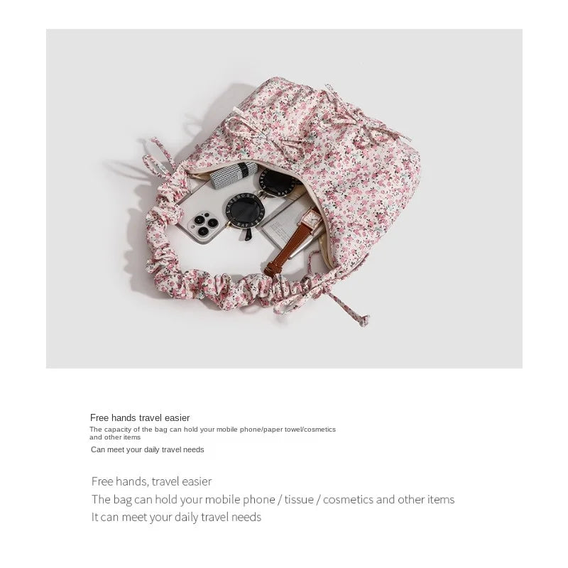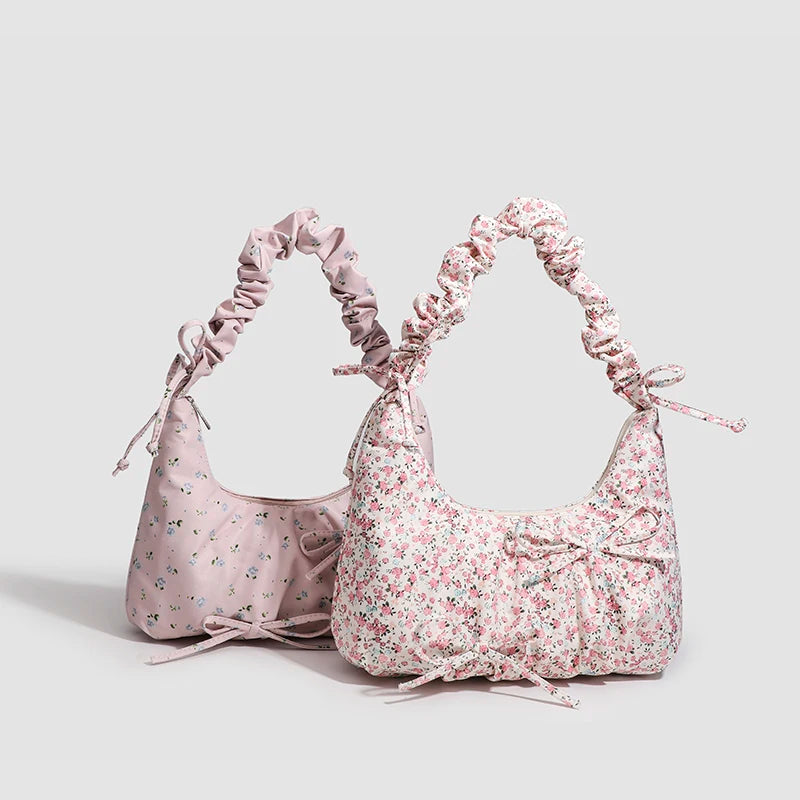 Kawaii Floral Canvas Rouched Handbag with Bow Decoration๐ธโจ