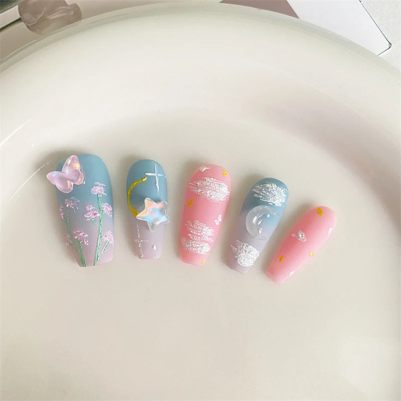 Kawaii Butterfly & Flower Press-On Nails πΈπ | Handmade Reusable Adhesive Fake Nail Art for Women π β¨