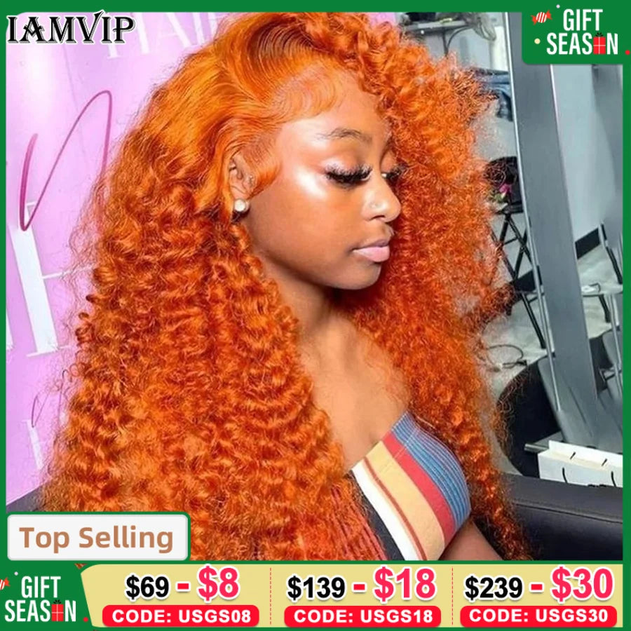 Kawaii Orange Ginger Curly Lace Front Wig 🌟✨ | Glueless Deep Wave 13x4 & 13x6 HD Lace Frontal 💖 | Soft & Bouncy Human Hair Wig 🦄