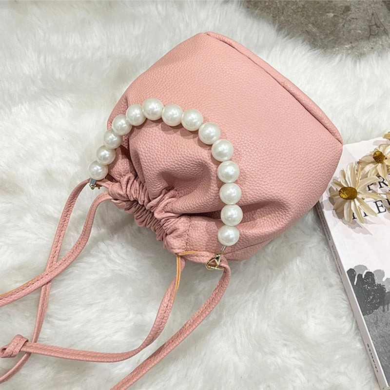Kawaii Pearl Chain Bucket Bag 🐰✨ | Adorable PU Shoulder Tote for Trendy Ladies