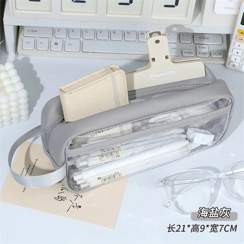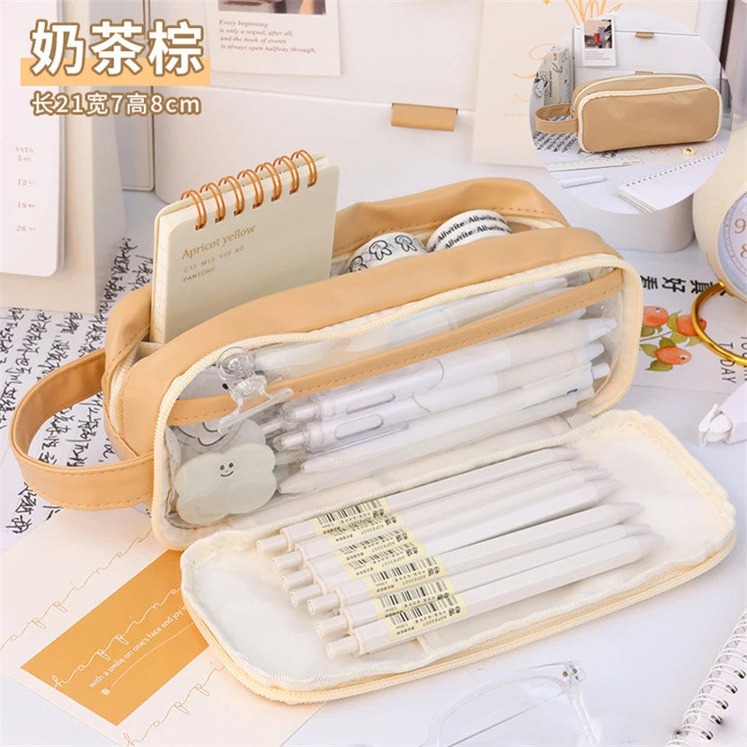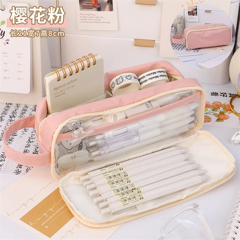 Kawaii Transparent Pencil Case πβ¨ | Multifunctional Storage Bag for Girls π | Large Capacity Double Layer School Supplies π¨βοΈ