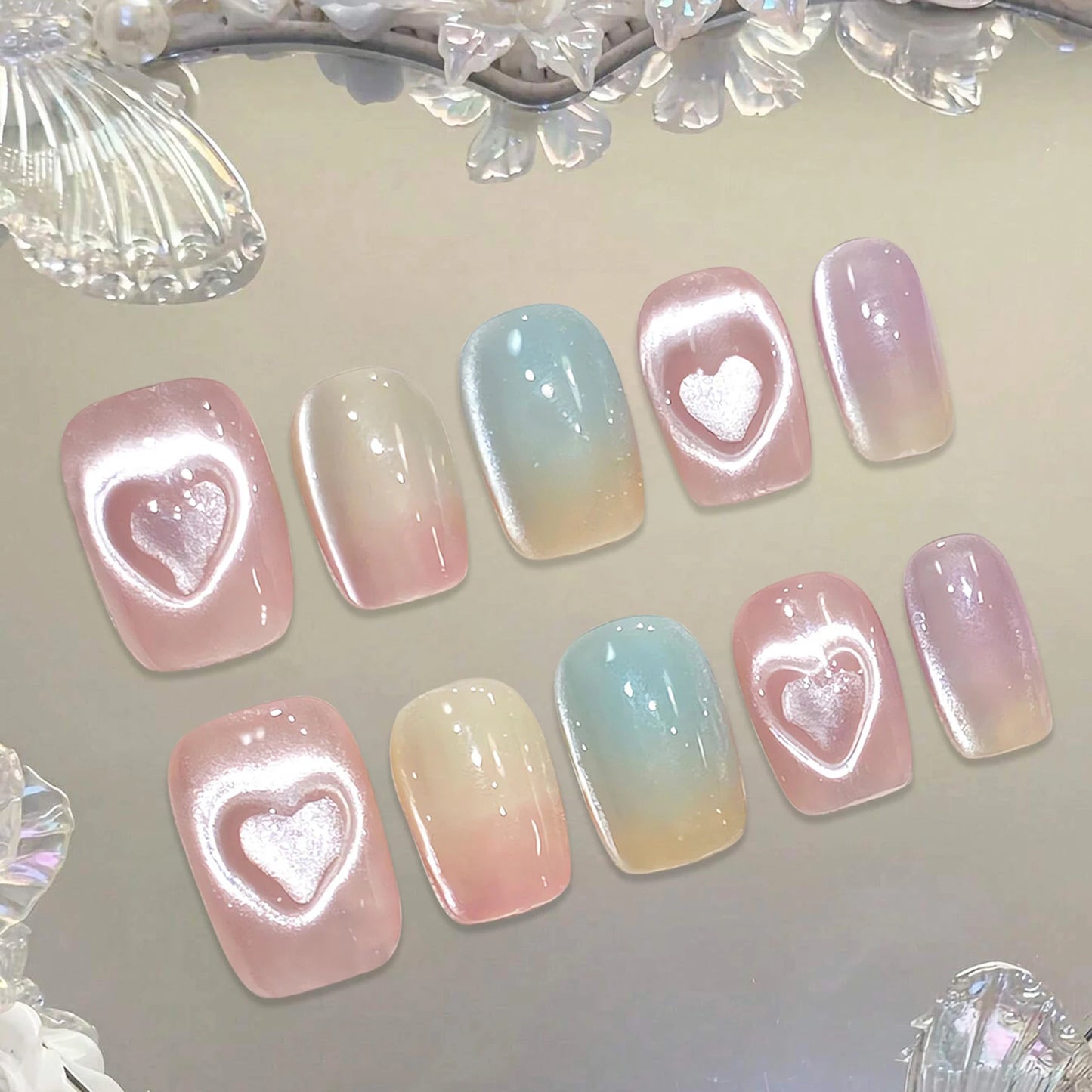 Transform your fingertips into a delightful dreamland with our Kawaii Pink Cat Eye Press-On Nails! Handmade with love, these adorable false nails feature charming heart and bow designs, perfect for adding a sprinkle of sweetness to your DIY manicure.