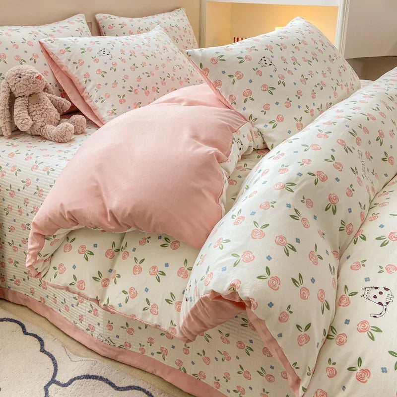 Cute Cat & Floral Duvet Cover Set πΈπ±