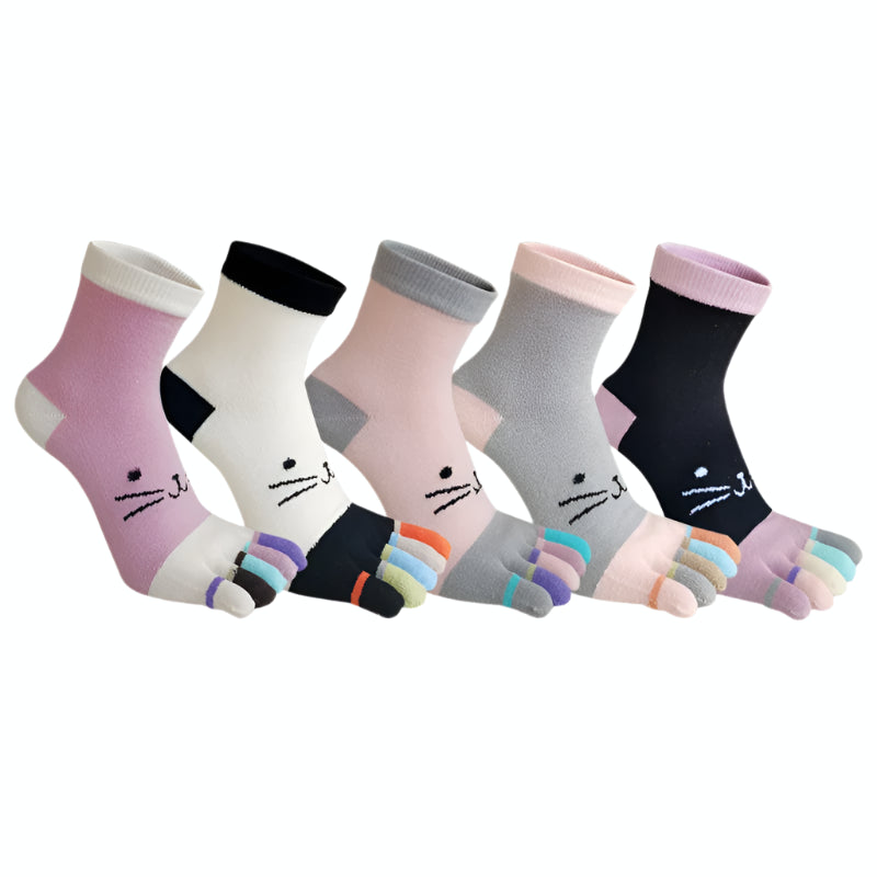 Kawaii Cat Cartoon Five Finger Socks πΎπ¨ | Soft & Colorful Women's Toe Socks for All Seasons πβ¨