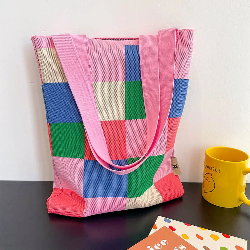 Kawaii Rainbow Knit Bucket Bag 🌈✨ is the ultimate blend of cuteness and practicality! Handcrafted with love from soft woolen yarn, this charming bag features a vibrant, checkered design that will brighten up any outfit!