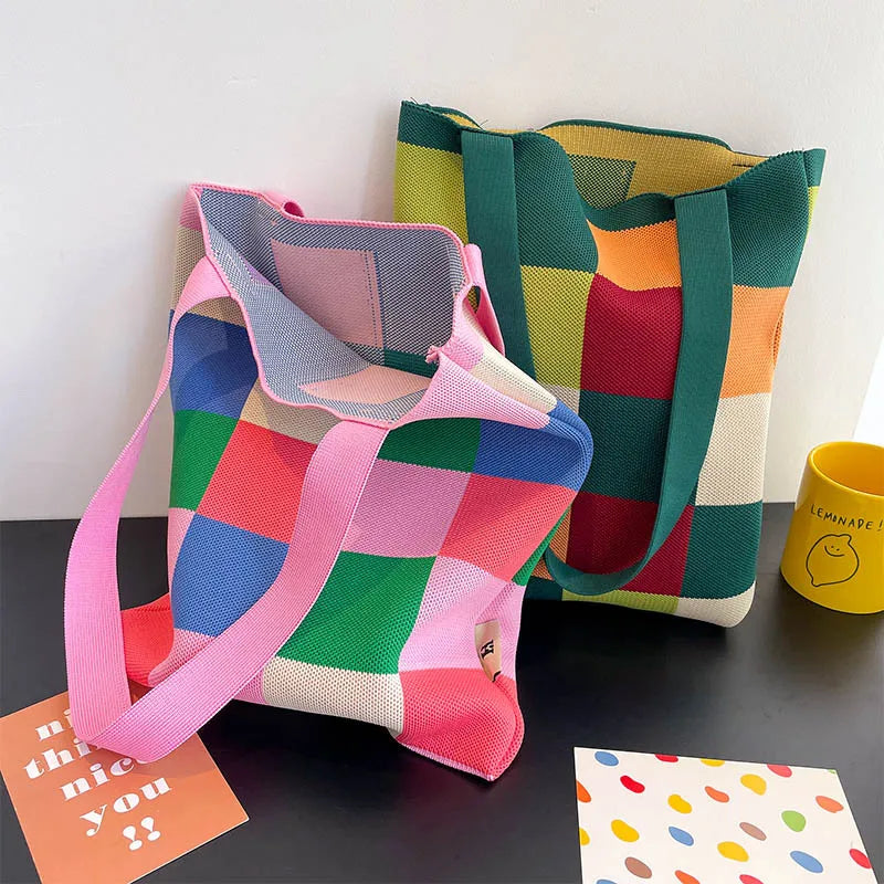 Kawaii Rainbow Knit Bucket Bag 🌈✨ | Handmade Woolen Tote for Stylish Women 👜💕