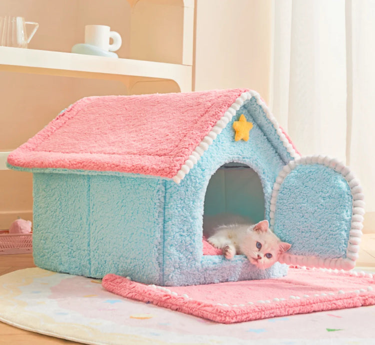 Transform your furry friend's sleep space into a whimsical retreat with our Removable Enclosed Cave! This charming dog house and cat bed is perfect for those chilly nights, offering a warm and snuggly haven. π