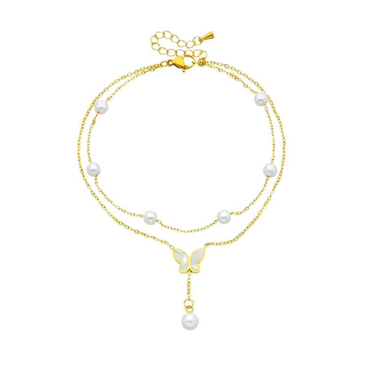 Kawaii Charm Anklet πΈβ¨ - 2-Layer Pearl & Butterfly Shells, Trendy Beach Jewelry for Stylish Ladies π¦π