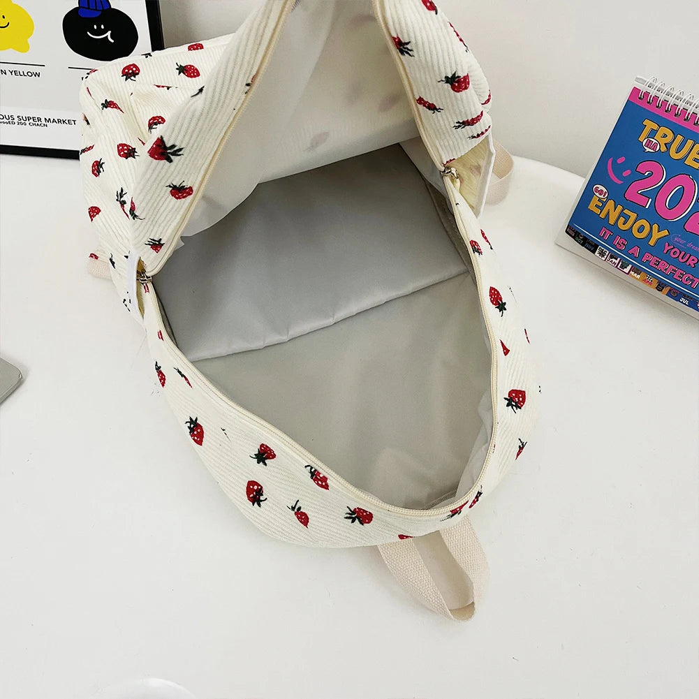 Kawaii Strawberry Corduroy Backpack 🍓✨ | Large Capacity Rucksack for Girls | Cute Casual Travel Bag 🎒💕