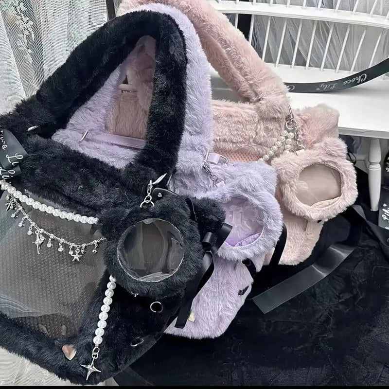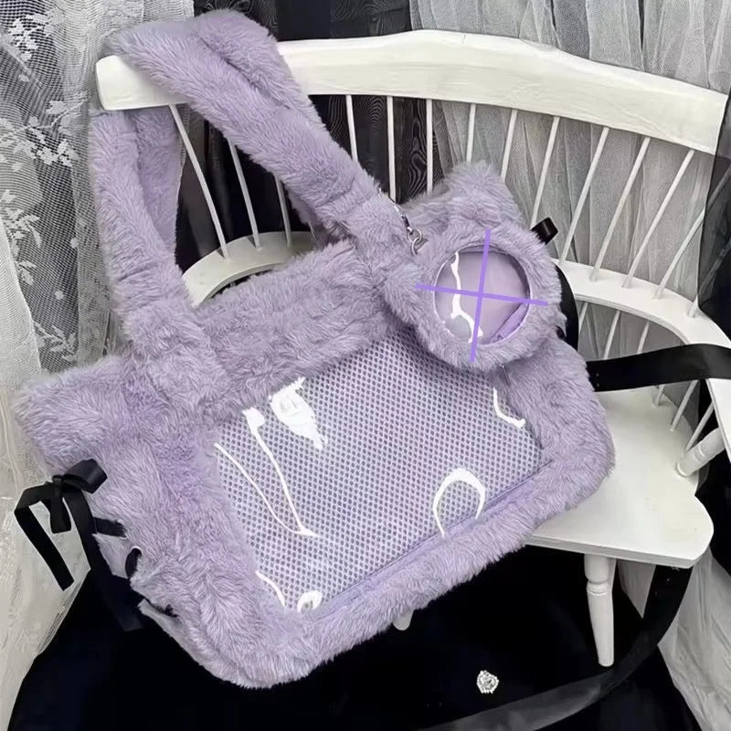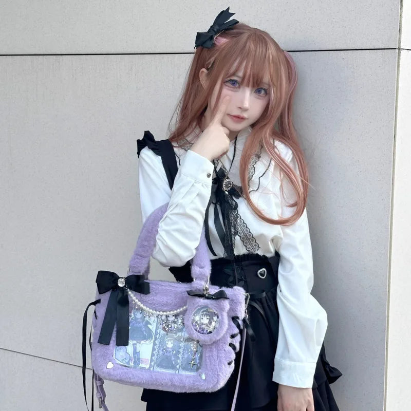 Kawaii Dreams: 3D Bow-Adorned Plush Ita Bag with Transparent Pockets π¦β¨