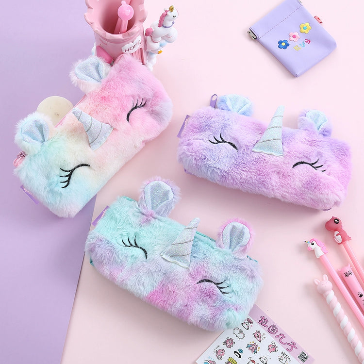 Cute Unicorn Winter Plush Pencil Case π¦β¨ | Kawaii Cartoon Storage Bag for Young Girls ππ