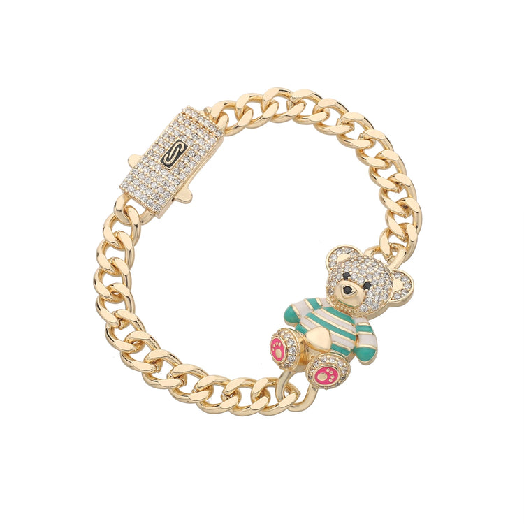 Kawaii Teddy Bear Cuff Bracelet π»π Sparkling Zirconia Charm for Whimsical Gifts! β¨
