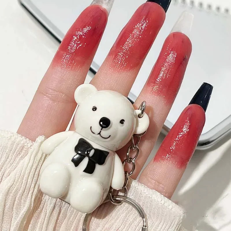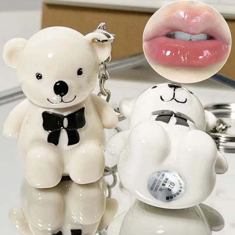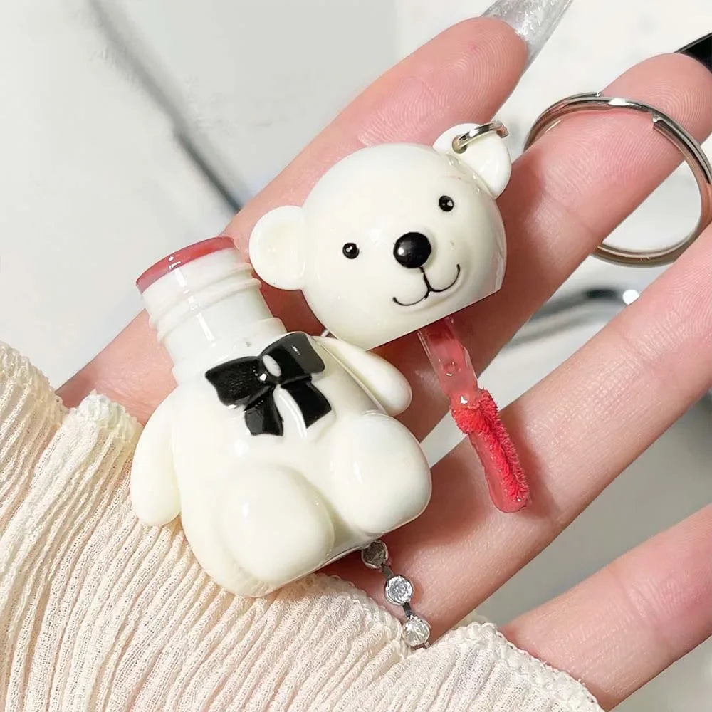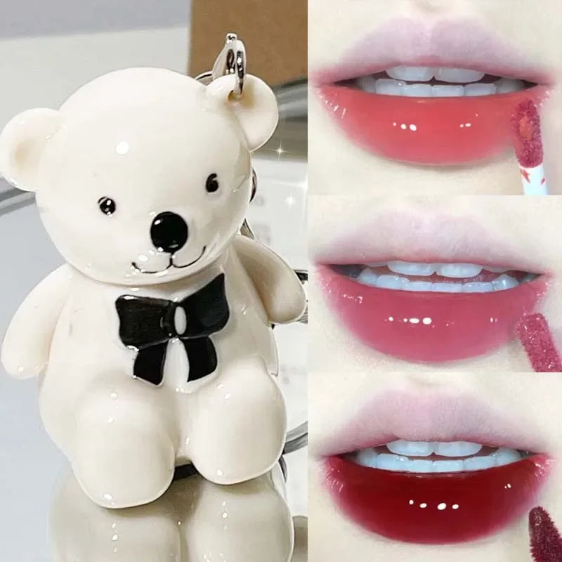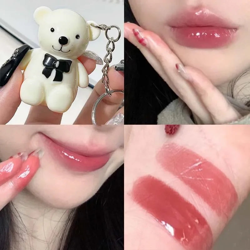 Water Light Mirror Lip Glaze Waterproof Long Lasting Cute Bear Keychain Lip Gloss Silky Smooth Liquid Lipstick Women Lip Makeup