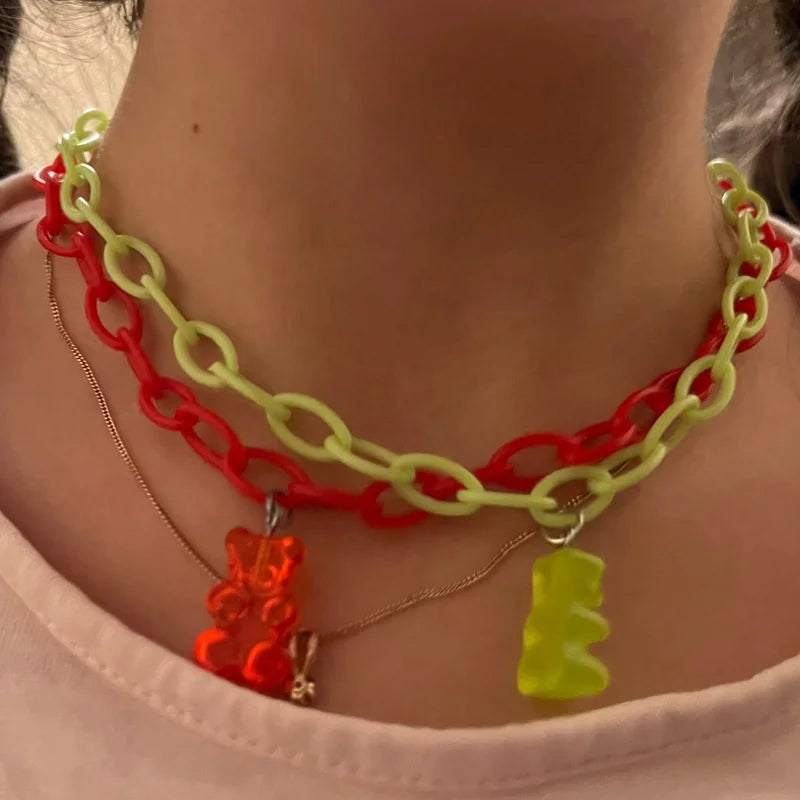 Introducing the Kawaii Candy Bear Choker Necklace π¬β¨βyour new favorite accessory that adds a sprinkle of sweetness to any outfit! Crafted with adorable resin gummy bears, this choker radiates charm and playfulness, making it perfect for parties or daily wear.