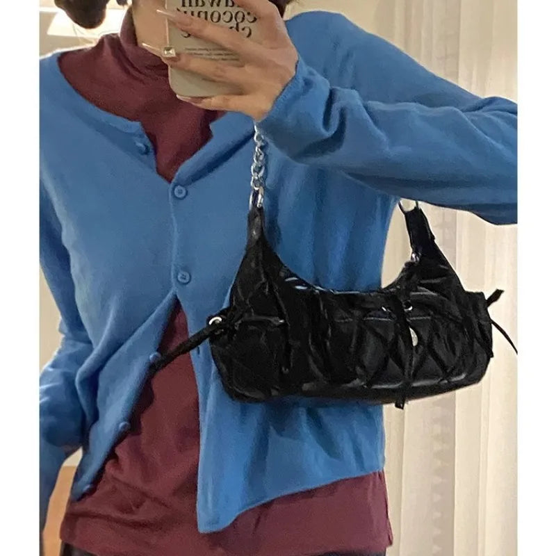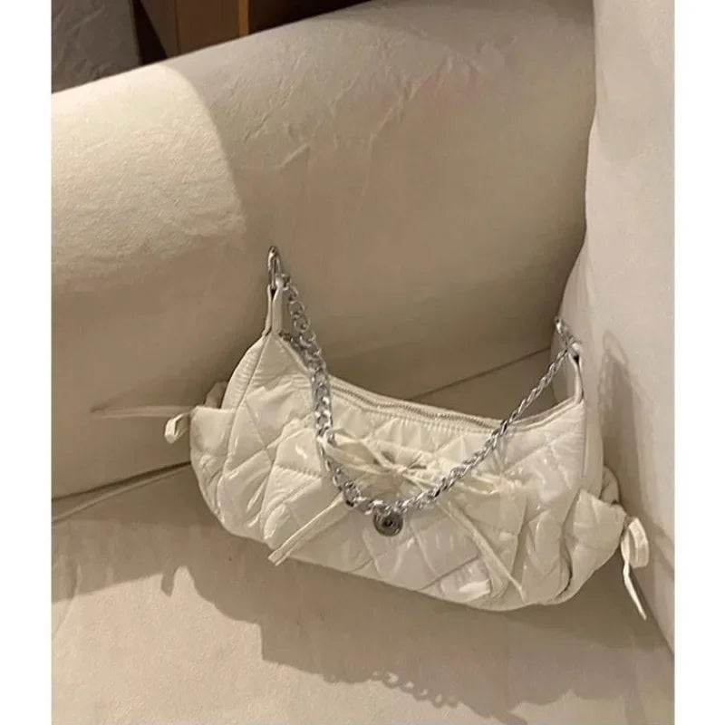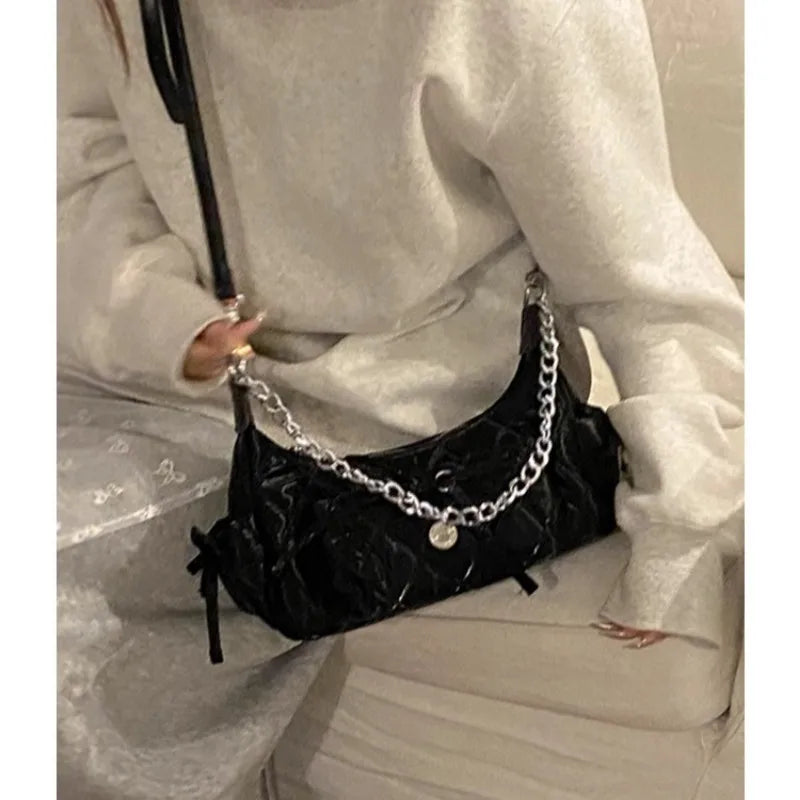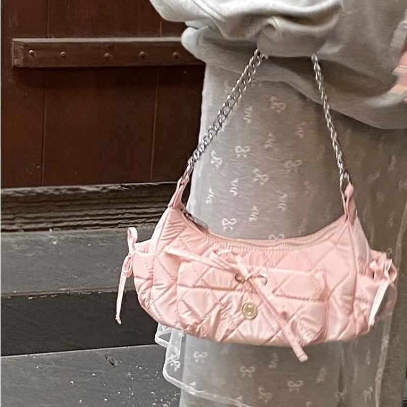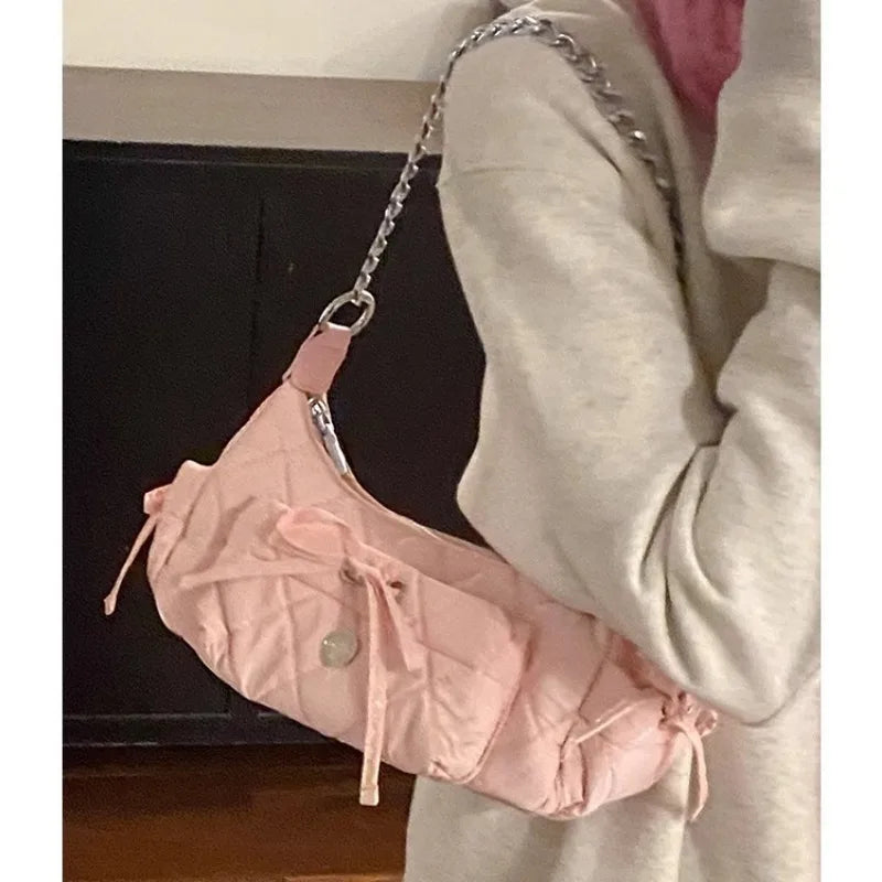 Xiuya Elegant Pink Shoulder Bag for Women Summer Fashion Leather Casual Cute Handbag Chains Hot Girls Daily Gentle Armpit Bag
